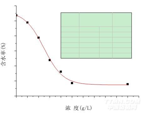 △P 的大小主要取決于θ和 r 的大小。當接觸角 0°<θ<90°時,COSθ大于零,△P 大于零,外界對水滴施加的壓力和毛細管附加壓力方向相同,水就能順利通過毛細管。當觸 角 90°<θ<180°時,COSθ小于零,△P 小于零,毛細管附加壓力阻止水的透過。在本 試驗中,隨著濃度的增大,試樣的接觸角逐漸增大,拒水性能越來越好,導致毛效快速的下 降。