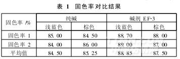 表1表明,無論是染淺色還是深色,用堿劑EF-3的固色率高于純堿的固色率,因此用堿劑EF-3替代純堿是可行的。