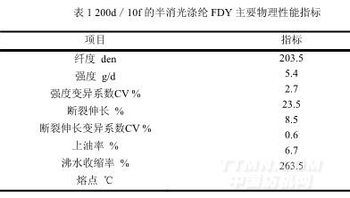 以規格為 200d/10f的半消光滌綸 FDY 復絲為原料。其質量指標見表 1。
