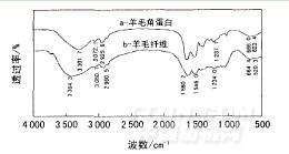 圖5是羊毛角蛋白和羊毛纖維的紅外光譜分析圖。