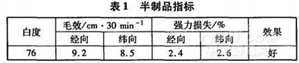 經(jīng)過原纖化處理后的織物表面產(chǎn)生許多纖毛,可采用專用纖維素酶去除,在日本工業(yè)砂洗機(jī)中進(jìn)行。纖維素酶的活性受溫度、酸堿度影響較大,僅能適應(yīng)較窄的pH值范圍,生產(chǎn)過程中要嚴(yán)格控制,用緩沖劑調(diào)節(jié)處理浴pH值。酶處理后通過升高溫度使酶失活,避免纖維素酶在織物上殘留,造成強(qiáng)力過度下降。不同用量的纖維素酶處理效果見表2。