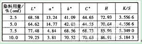 改變染料質量分數分別為2.5%、5%、7.5%、10%(omf),其對棉織物的色度指標影響見表4。