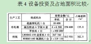 2.4兩種工藝設備投資和能源消耗比較