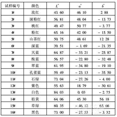 材料 不同顏色的錦氨針織面料,顏色參數(shù)見表1。