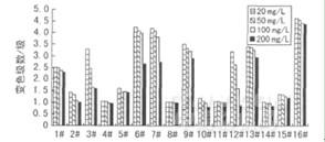 2.1 氯化水濃度對耐光/氯化水復(fù)合色牢度的影響