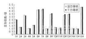 (4)干態曝曬與濕態曝曬對復合色牢度影響不大,因此試驗選擇連續性較好的濕態曝曬。∞