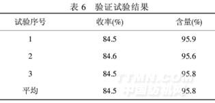 確立優化工藝條件為:n(4-羥基苯磺酸鈉)∶n(壬酸)∶n(亞硫酰氯)=1∶1∶1.3,甲苯為溶劑,85℃反應5 h.為了驗證所選定的條件,進行了3組驗證試驗,以確定其準確性和可重復性,結果如表6所示.