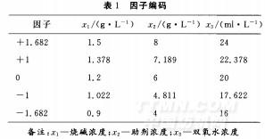 為研究精干麻殘膠率、白度和斷裂強度隨堿煮練工藝參數改變而變化的規律,本文采用了2次通用旋轉實驗設計.因為氫氧化鈉量、助劑量和雙氧水量對殘膠率和白度影響較大,因此選取以上3個參數作為實驗因子,采用三因子二次旋轉組合設計進行實驗安排,其因子編碼水平見表1.