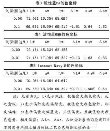 下降有導致色光變淺;這就說明勻染劑HT15可以加深色光,但在生產中要合理安排勻染劑HT15的用量,選擇合適的工藝和勻染劑HT15的用量,否則將會導致色光反而下降。通過對上面三組不同染料的對比來看,活性染料效果最好。且毛用活性染料時色光增深效果最好。