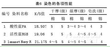 上述數據可以看出,它的活性染料牢度和K/S值優于酸性染料的濕摩擦牢度,從而可以看出這種勻染劑能替代酸性染料染錦綸牢度不好的問題。