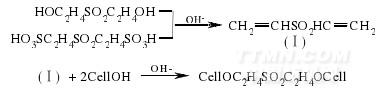 最初是20 世紀60 年代由BASF 公司作為交聯染料Basazol(含磺酰基的活性染料)的固色劑而推出的,其商品牌號為固色劑P.[2]41FAP 可以在堿性條件下打開雙鍵,在交聯染料和纖維素分子之間發生共價交聯,可大大提高染料的固色率和色織物的濕處理牢度.除用于棉織物的交聯染色外,FAP 也可用于尼龍織物和羊毛織物的交聯染色過程.采用4%(owf) FAP 交聯染色羊毛,竭染率98%、反應率100%、固色率98%,染色后織物的水洗牢度4~5 級,汗漬牢度4~5 級,日曬牢度5 級,染色性能較傳統染色法有很大提高.[27]后來,FAP 被用于織物抗皺整理中.在整理浴中添加芒硝、氯化鈉,經濕式處理,棉布可獲得較高的干防皺性和優良的防縮效果.FAP 的主要缺點:(1)對纖維的直接性差,用作固色劑時只適于軋染和印花;(2)水溶性差,尤其是在低溫條件下溶解困難.[2]41D M Lewis[28]通過加入氨水的方法解決了該交聯劑的溶解問題,并將其用于棉織物抗皺整理.研究表明,FAP 可在堿性條件下通過浸軋→烘干→汽蒸工藝與纖維素分子交聯,免燙效果不低于2D 樹脂,其DP 級甚至高于2D 樹脂.[2]41