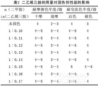 2.1.2二乙烯三胺的用量對固色劑性能的影響