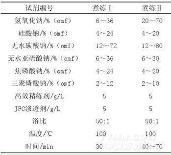 潤濕→煮練Ⅰ→熱水洗→冷水洗→煮練Ⅱ→熱水洗→冷水洗→烘干→稱重