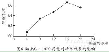 由圖6可得出結(jié)論,當(dāng)Na4P2O7 •10HO2為16%(omf)時(shí),失重率最大為66.52%,可以獲得最佳的處理效果。
