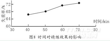 在不改變煮練Ⅱ處方中各用量的前提下,僅改變時(shí)間,失重率變化結(jié)果見圖8。