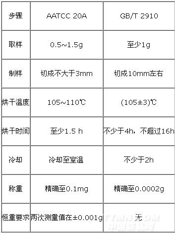 AATCC20A中提供了8種化學分析法:100%丙酮法、20%鹽酸法、59.5%硫酸法、70%硫酸法、堿性次氯酸鈉法、90%甲酸法、二甲基甲酰胺和二甲基乙酰胺法。而GB/T2910提供了23種化學分析法,覆蓋了AATCC20A所有測試方法。現從樣品準備、試劑選擇、測試過程、數據處理等方面,分析兩個方法體系之間的差異。