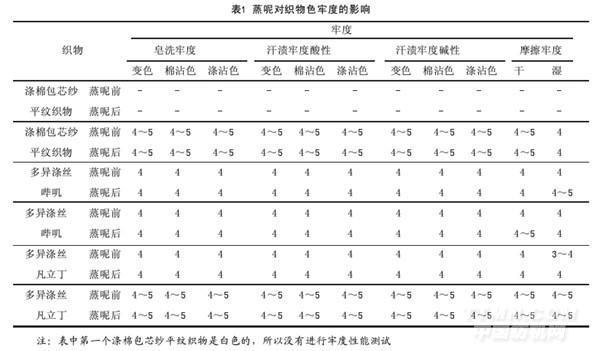 對(duì)織物的皂洗牢度和汗?jié)n牢度影響不大,蒸呢前后牢度評(píng)級(jí)基本不變,只有濕摩擦牢度偶爾會(huì)提高半級(jí),也許是測(cè)定過(guò)程中的誤差造成的。