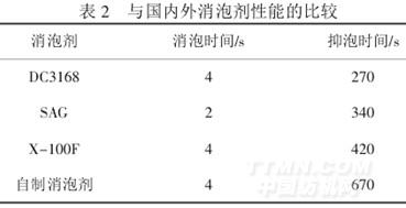 由表2 可以看出,所合成的消泡劑消泡、抑泡性能良好.