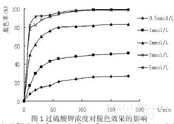 圖1 過硫酸鉀濃度對脫色效果的影響