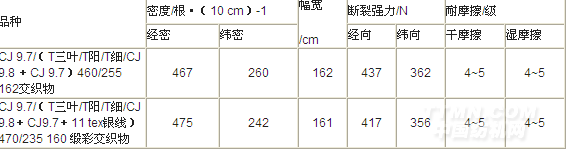 表5 交織坯布產品主要質量指標
