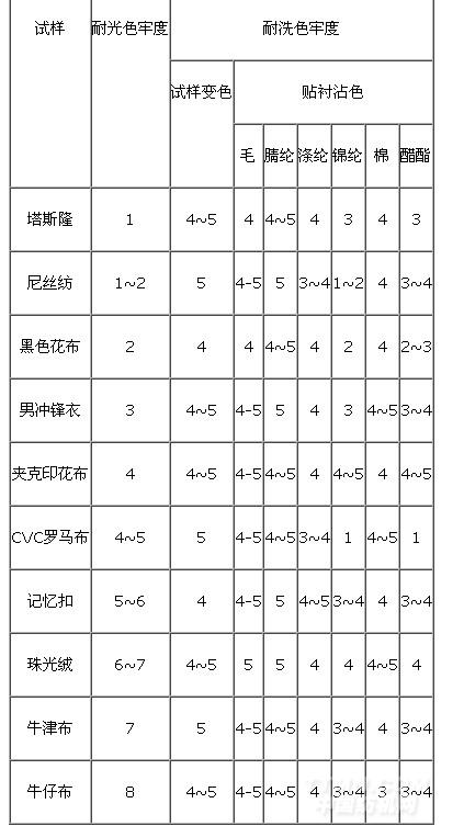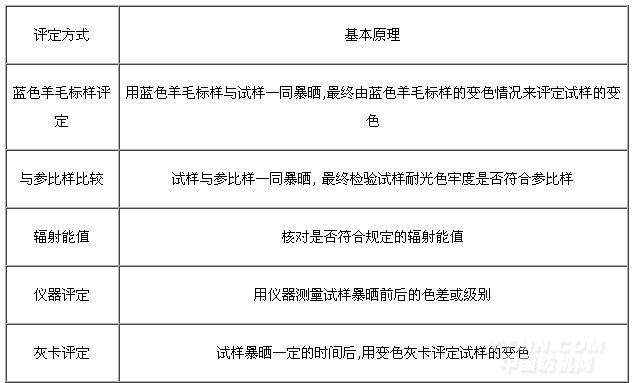 耐光色牢度的評(píng)定方式有多種,具體見表1。