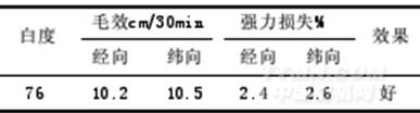 利用堆置時酶的作用,分解織物上的漿料,并通過熱水洗去除,確保半制品毛效、白度、前后一致性滿足后道加工的要求。經退漿處理,半制品各項指標(見表1)符合后工序要求。