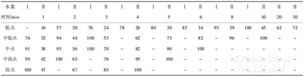 表140mL或300mL水在不同微波火力加熱不同時(shí)間的水浴溫度(℃)