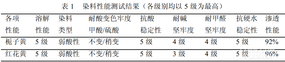 表1 染料性能測試結(jié)果(各級別均以5級為最高)
