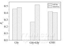 2.2.3Gly-Gly-MIPMs的選擇吸附性為考察所制備的Gly-Gly-MIPMs對Gly-Gly分子具有的特異選擇性,采用薄層色譜(TLC)分離實驗研究了Gly-Gly-MIPMs對具有類似結構的甘氨酸(Gly)、雙甘氨肽(Gly-Gly)和谷胱甘肽(GSH)3種不同底物的選擇吸附性,其比移值Rf