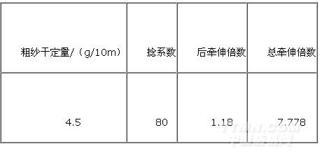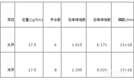 本工序采用了“重加壓,大隔距,合理張力牽引,充分合并,防纏,防堵”的工藝措施,使用順牽伸,頭道并條的后牽伸倍數適當加大,以利于提高纖維的伸直平行,從而提高熟條質量。采用了自行研制的防靜電裝置,減少了靜電現象的產生。其主要工藝參數見表2。