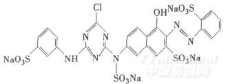 試劑 醚化劑EPTMAC(2, 3-環氧丙基三甲基氯化銨,東營市颯格曼石油科技開發有限公司);NaOH、無水乙醇(分析純,國藥集團化學試劑有限公司);5 mol/LHCl溶液、0. 01 mol/L AgNO3(自制);模擬活性橙K-GN染料廢水(采用純活性橙K-GN加入蒸餾水稀釋至刻度配置而成,質量濃度100 mg/L)活性橙K-GN結構式: