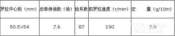 4.6細(xì)紗采取兩大、兩小工藝原則,降低車(chē)速,適當(dāng)增加壓力,改善成紗條干水平。細(xì)紗主要工藝如下: