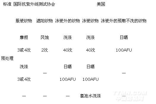 表1 國際抗紫外線測試協會和美國預處理的過程
