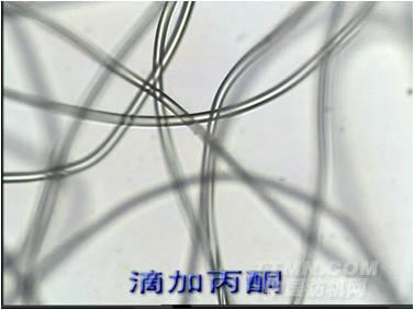 將溶解實驗和顯微鏡觀察實驗結合起來,在顯微鏡觀察試樣中纖維縱向形態的同時,往載玻片上滴入不同試劑,觀察顯微鏡下維特綸纖維的溶解性能,或維特綸纖維在溶液中的狀態。