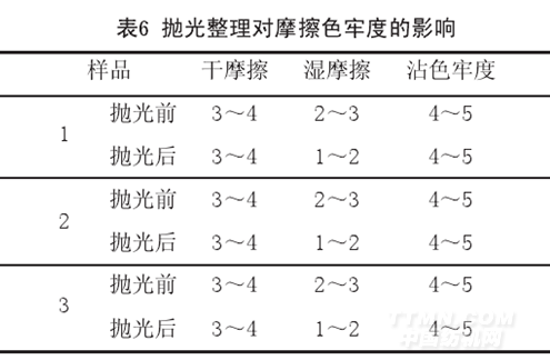 5.4 拋光整理對摩擦色牢度的影響(表6)