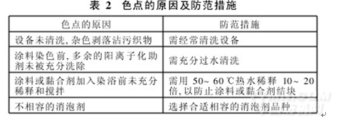 色點產生的原因及防范措施見表2。