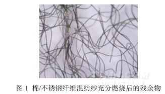 圖1 棉/不銹鋼纖維混紡紗充分燃燒后的殘余物