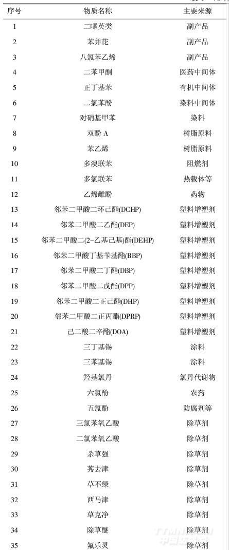 表1所列出的環境激素中,包括被稱為“世紀三毒”的二英、DDT和多氯聯苯.其中除草劑、殺蟲劑、殺菌劑等農藥或其代謝物比例較大,約占70種環境激素的2/3.