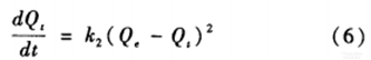 2.2.2準(zhǔn)二級動力學(xué)方程 準(zhǔn)二級動力學(xué)模型基于吸附速率由纖維表面未 被占有的吸附空位數(shù)目的平方值決定的假設(shè),其公 式為:.png)