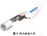 多軸向經編增強材料因其獨特的性能越來越多地被用于制造風力發電葉片,如圖6。通常,在葉片蒙皮設計時,可根據受力的不同來選擇織物結構(單軸向、雙軸向、多軸向)。多軸向織物主要是用在葉片根部,利用40多層織物的合理鋪設來承受由扭矩產生的剪切力。在卡爾邁耶機號為9F(針/25mm)的Multiaxial型機器上生產的一種三軸向織物,襯紗均采用3000dtex玻璃纖維紗,襯入順序為+45o/-45o/0o,成圈紗采用76dtex/24f的高強滌綸紗,并通過經平組織將它們綁縛起來。隨后可將該織物與新型的復合成型工藝,如RTM、VARTM等工藝結合起來制成高性能多軸向經編復合材料用于風力發電葉片的生產。目前,風力發電葉片正朝著大型化、輕量化、高性能、低成本方向發展,世界上發達國家制造的葉片長度已達到60多米,加長型的風力發電葉片需要高強、高模、輕質型的材料,而多軸向經編織物正是迎合了這一需求,且能完全符合大型葉片對蒙皮材料的各項性能要求,因此具有很大的發展前景。