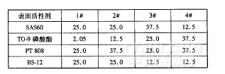 表1中,在強堿條件下,表面活性劑的各項指標(biāo)均比較理想。SAS60在強堿性條件下的起泡性稍差,而PT808、TO-9磷酸酯的起泡、穩(wěn)泡效果較好。