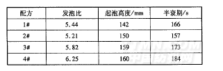 注:發(fā)泡比是指發(fā)泡前一定體積的液體質(zhì)量對發(fā)泡后相l(xiāng)司