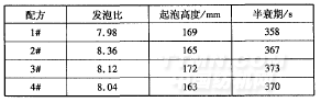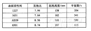 表7各表面活性劑的發(fā)泡指標(biāo)對(duì)比