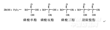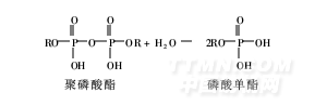 在生成物中,聚磷酸酯在一定條件下可以水解為相應的單酯,單酯鹽含有2個親水基團,而雙酯鹽只含有1個親水基團,故單酯鹽比雙酯鹽的滲透性更好[3]。其水解反應式為: