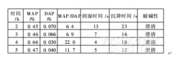 在配比為3∶1,酯化溫度90℃,水解2h工藝下,考察不同酯化時(shí)間(2、3、4和5h)對合成產(chǎn)品性能的影響,結(jié)果見表3。