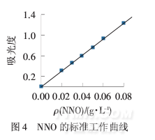 式中A為吸光度,ρ為NNO質量濃度,回歸系數為R2=0.998 8.