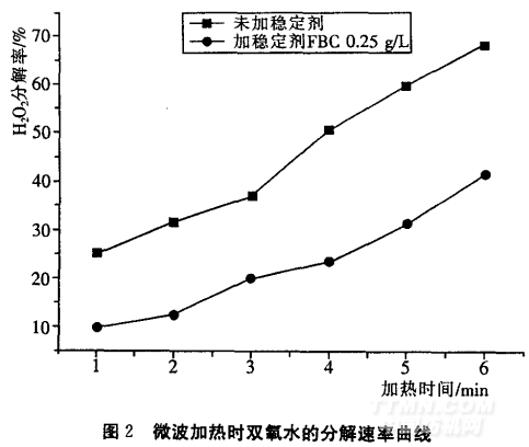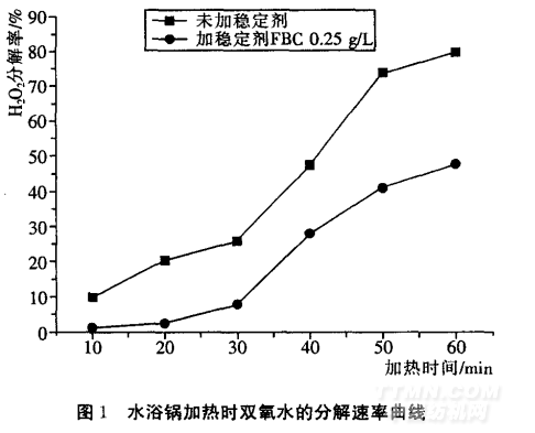 穩(wěn)定劑對(duì)雙氧水分解速率的影響見圖1和圖2
