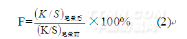通過測定染色前后染液的吸光度,按式(1)計算: