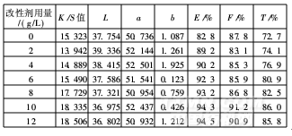 改變改性劑用量,按1.2.1節進行改性,改性后織物進行常規工藝染色。研究改性劑用量對染色性能的影響,結果見表1。