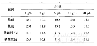 活性染料固色pH值一般以10~11較合適.一般根據活性基反應性的不同,選用堿劑的堿性強弱也應有所不同.[2]從表1可以看出,磷酸三鈉和純堿的緩沖能力較強,在固色要求的pH范圍內,pH值較穩定,但存在用量大,勞動強度大等問題.而隨著燒堿用量的增加,pH值直線上升,溶液pH值穩定性較差,染色難以控制,一般不單獨使用.代堿劑SM用量在1~5g/L時,溶液的pH值始終在11.1~11.9,且pH值緩沖能力較好,用量較少.另外,代堿劑SM用量從1g/L增加到5g/L,pH值升高了0.8,而純堿僅增加了0.4,說明代堿劑SM的緩沖能力不如碳酸鈉.因此,在活性染料染色固色過程中,使用代堿劑SM必須嚴格控制其用量